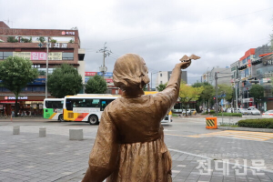 북구청 앞 지난 10일, 기자 머문 2시간 동안 찾는 사람 없어남구 양림동에서 만난 시민들 "할머니들 기억할 것"사과와 배상 문제 해결 이어가려 자치구 기념행사 꾸리기도광주 북구청 앞은 평소 유동 인구가 많은 곳이지만 그곳의 '평화의 소녀상'(소녀상)은 시민들의 관심을 받지 못했다. 기자는 일본군 ‘위안부’ 피해자 기림의 날(기림의 날/8월 14일)을 맞아 지난 9-10일 이틀간 광주 북구 용봉동과 남구 양림동에 위치한 소녀상을 찾았다. 지난 10일, 기자가 머물렀던 2시간 동안(오후 3시 30분부터 5시 30분) 북구청 앞 소녀상