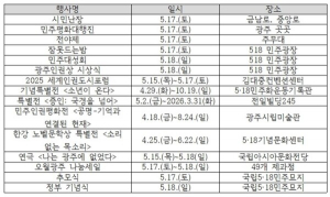 5·18민중항쟁(5·18) 45주년을 맞아 광주 곳곳에서 여러 행사가 기획됐다. 5·18민중항쟁기념행사위원회는 17-18일 이틀에 걸쳐 전야제를 비롯한 △시민난장 △민주평화대행진 △잠못드는밤 △민주대성회 △광주인권상 시상식 등을 동구 금남로 일대에서 진행할 예정이다. '아! 오월, 다시 만난 오월'을 주제로 진행되는 전야제는 올해 더 많은 인파가 몰릴 것으로 예상, 기존 전일빌딩 앞이 아닌 금남로4가역 교차로에 주무대를 마련한다. 1980년 당시 가두행진을 재현하는 민주평화대행진은 17일 오후 4시 △북동성당 △조선대 △전남대 △광
