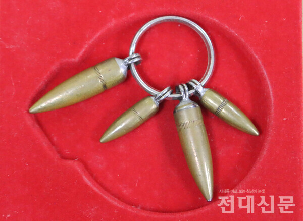 고리에 걸린 4개의 탄환은 2022년 5월, 광주기독병원에서 열린 5·18 학술 행사를 갔을 때 당시 기독병원 직원이 기록관에 기증했다. 김 학예연구사는 “기증한 분이 잊지 않으려고 고리에 탄환에 보관했다"며 “언젠가 기증해야겠다고 생각했는데 마땅한 기회가 없었던 거 같다”고 말했다.