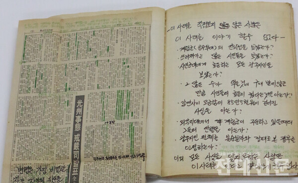 주소연 당시 광주여자고등학교 3학년이 쓴 일기장이다. 일기장에는 신문이 스크랩되어 있기도 하다. 일기장을 읽어보면 주씨의 민주화를 향한 열망이 느낄 수 있다. “이 사태를 직접 보지 않은 사람은 이 사태를 이야기할 수 없다” “계엄군의 잔인성을 보았는가?” “쓰러져가는 많은 시민들을 보았는가?” 등의 내용이 적혀있다. 이는 5·18 세계기록유산 누리집을 통해 확인할 수 있다.