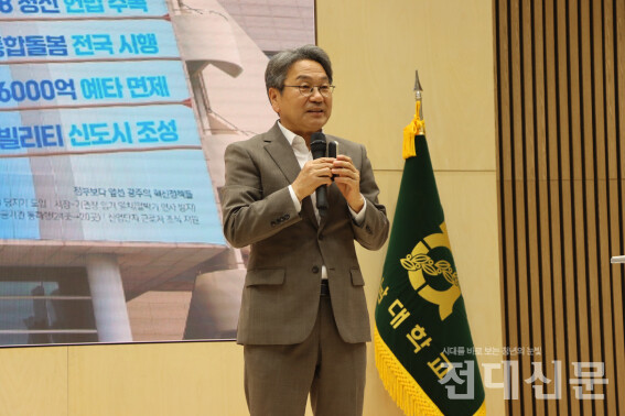 지난 16일 대학본부 2층 용봉홀에서 ‘민주의 가치를 성장의 기회로’를 주제로 용봉포럼이 개최됐다. 본 포럼에서는 강기정 광주광역시장이 연사로 나서 민주화운동에 기반한 광주의 잠재력과 미래 비전을 제시했다. 강 시장은 “1980년 5월 당시 광주의 DNA가 작년 12월 3일 위헌적인 비상계엄을 막아냈다”며 “모두가 하나 된 정신을 보여준 순간이었다”고 평가했다.
